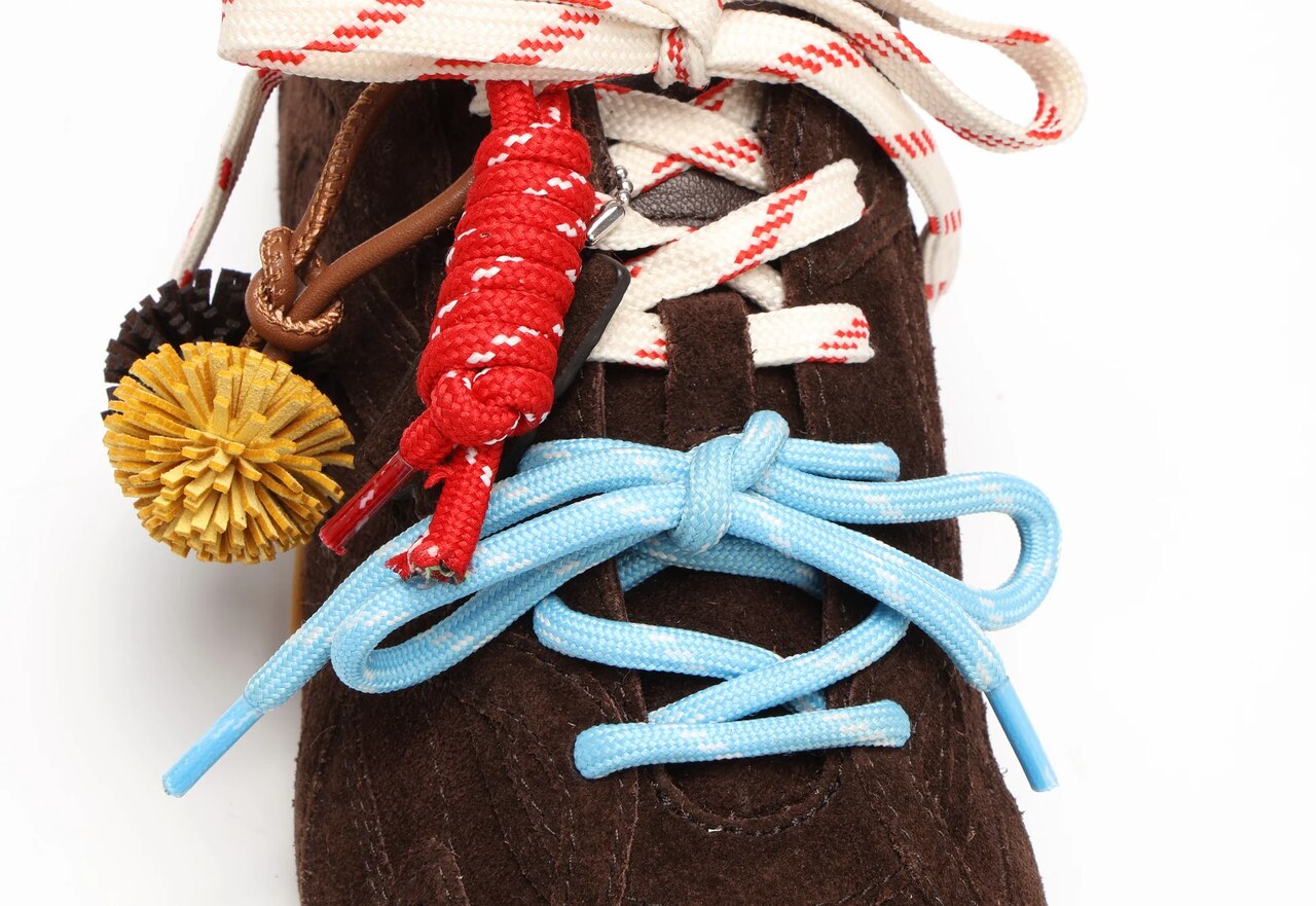 Buty zostały wykończone kontrastowymi sznurówkami i charakterystyczną zawieszką Nokwol. Dodatkowym atutem jest możliwość indywidualnego dopasowania wyglądu poprzez dokupienie ozdobnych zawieszek i sznurówek z kolekcji marki.