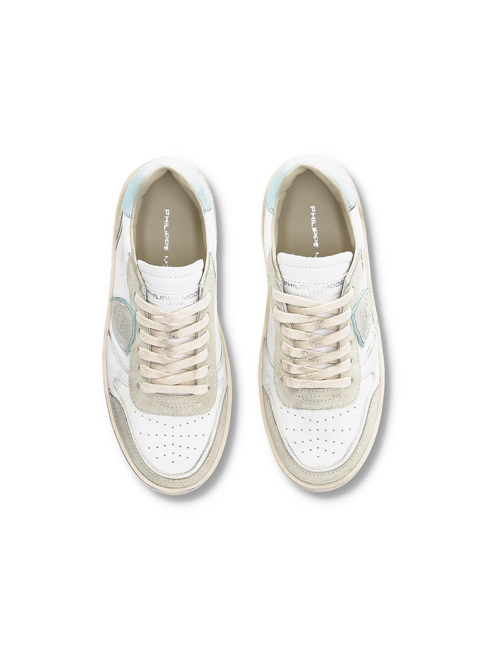 Esencja butów sportowych z lat 90., odświeżona w stylu street chic. Nowa wersja Nice łączy szlachetne materiały, takie jak skóra cielęca i zamsz, z kolorowymi akcentami na pięcie, lamówce z logo i podeszwie zewnętrznej.