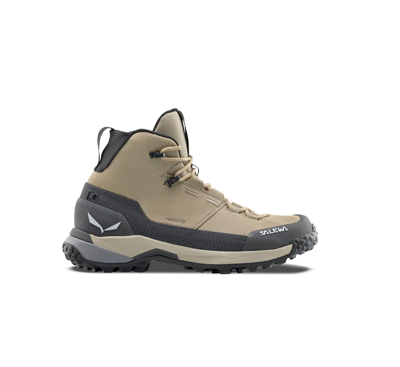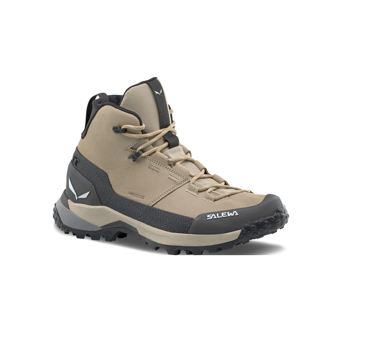 Wytrzymała i elastyczna cholewka z włoskiej skóry nubukowej jest wzmocniona zintegrowanym owijającym kablem Kevlar® 3F System przy kostce i hybrydowym odpornym na ścieranie tekstylnym rantem, a wodoodporna i oddychająca membrana Powertex® ochroni przed najgorszą pogodą.