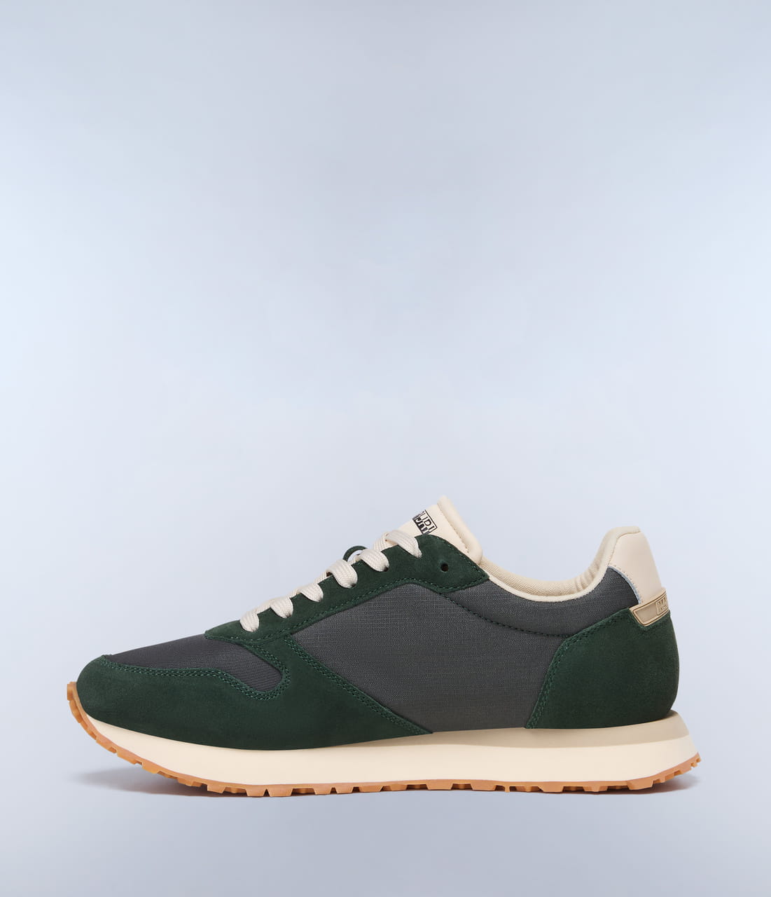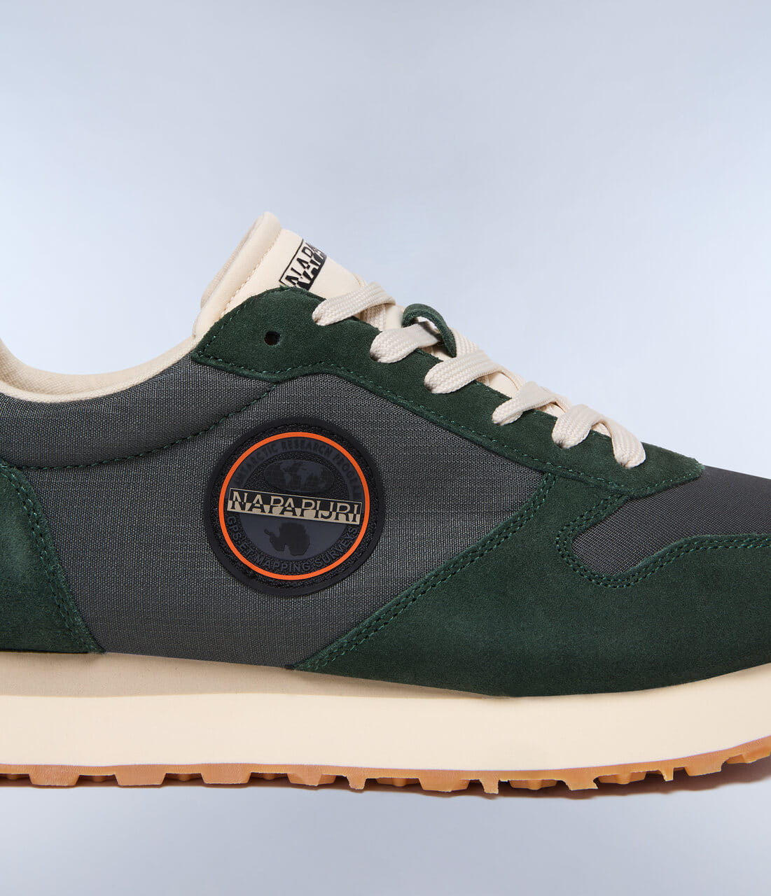 Nova to buty sportowe w biegowym stylu vintage z kultową gumowaną naszywką Napapijri z boku. Wykonane są z zamszu i oddychającego nylonu. Mikroporowata podeszwa do biegania jest lekka i wygodna, a gumowy bieżnik zapewnia dodatkową przyczepność i odporność na zużycie.