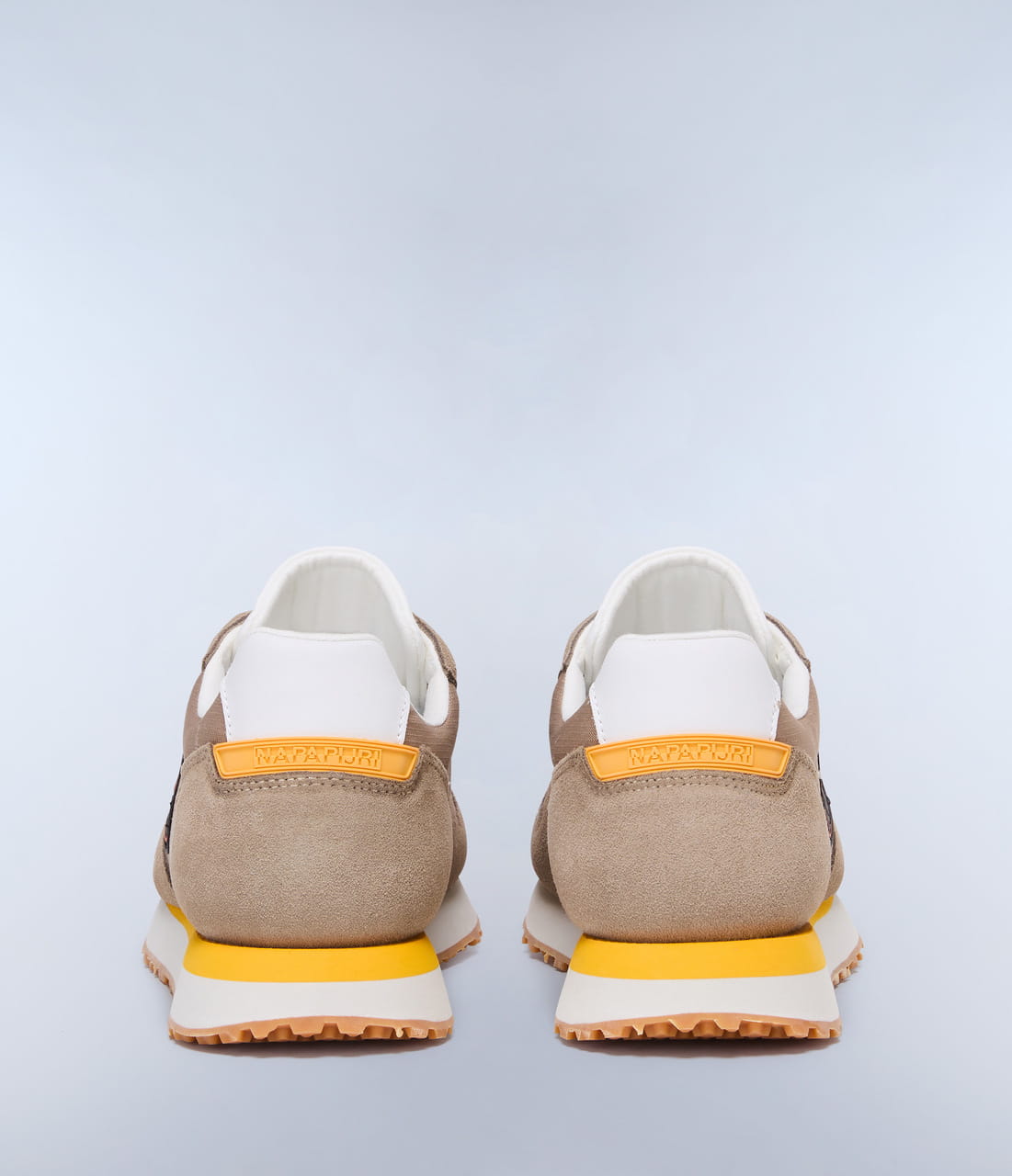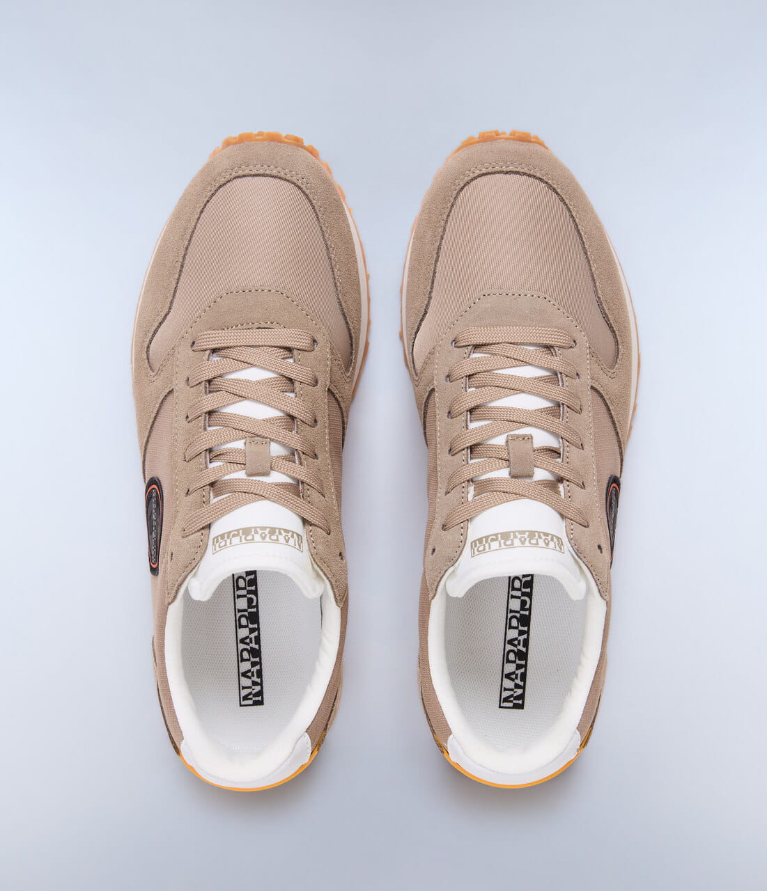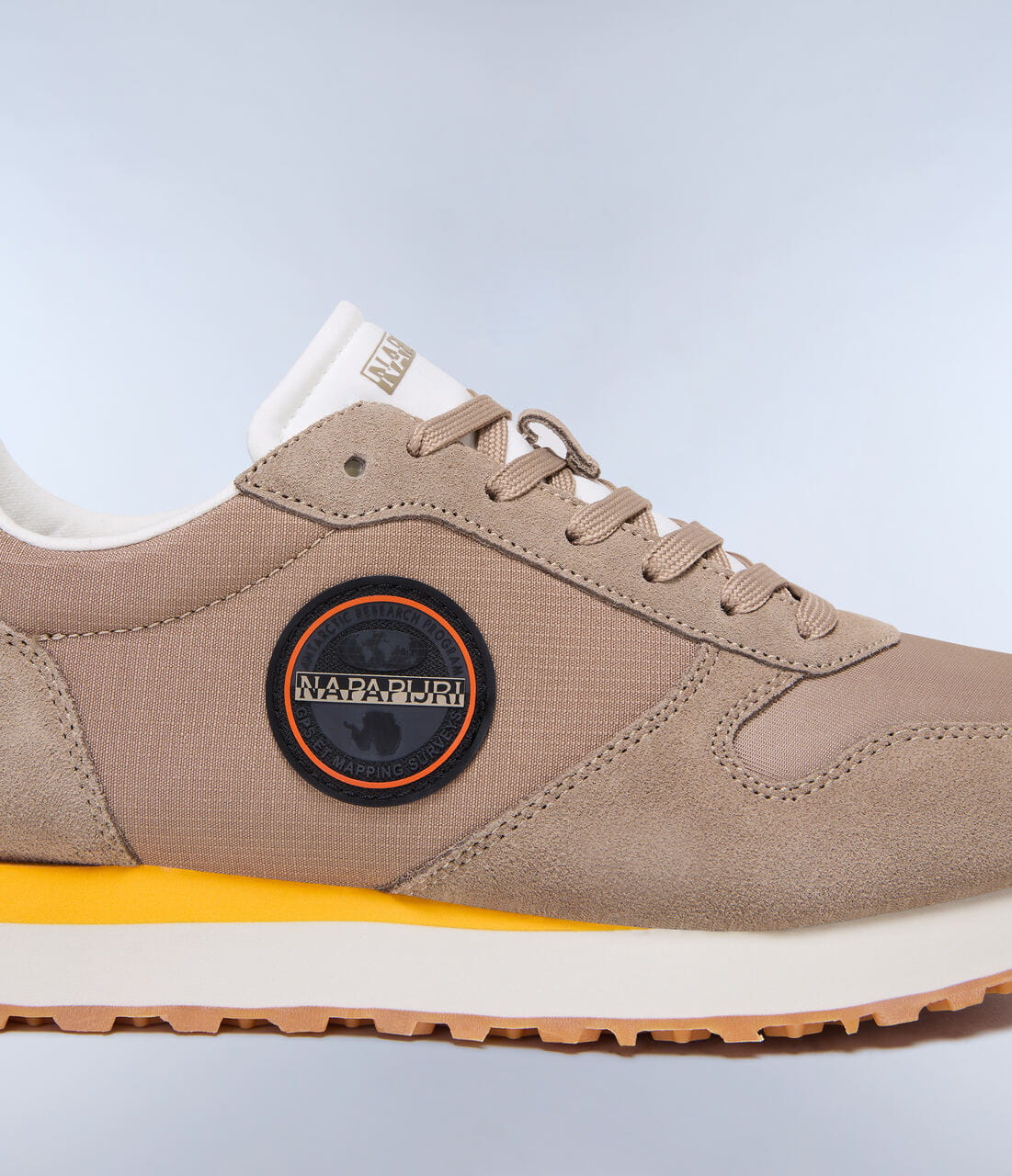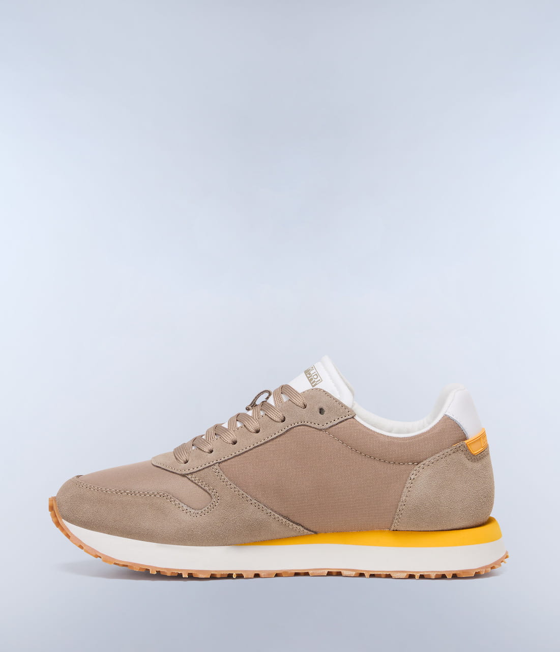 Nova to buty sportowe w biegowym  stylu vintage z kultową gumowaną naszywką Napapijri z boku. Wykonane są z zamszu i oddychającego nylonu. Mikroporowata podeszwa do biegania jest lekka i wygodna, a gumowy bieżnik zapewnia dodatkową przyczepność i odporność na zużycie.