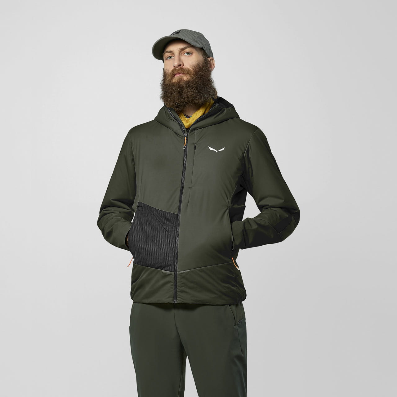 Hybrydowa konstrukcja łączy naturalną wełnę tyrolską z poliestrem (75% z recyklingu), oferując doskonały stosunek ciepła do wagi, nawet gdy materiał jest wilgotny. Włókna z pustym rdzeniem skutecznie zatrzymują powietrze, zapewniając komfort termiczny. Kurtka ma dopasowany krój, elastyczny kaptur przeciwsztormowy, siateczkową kieszeń na froncie oraz praktyczne kieszenie zapinane na zamek. Dyskretne elementy odblaskowe zwiększają bezpieczeństwo w terenie.
