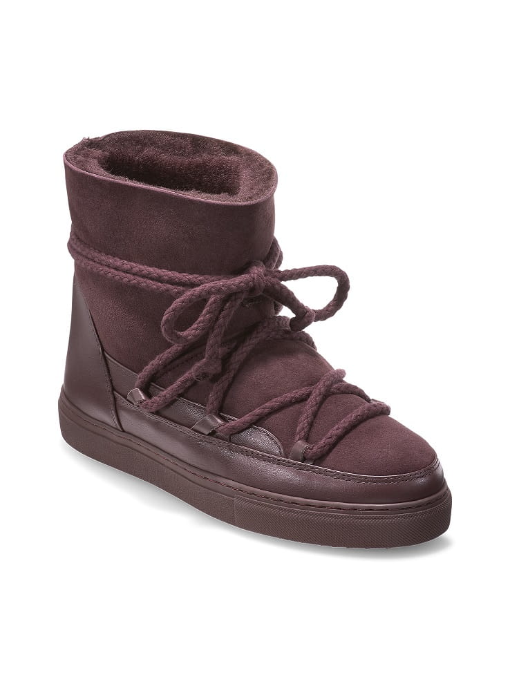 Inuikii Classic Sneaker Women (bordeaux) to modne buty damskie zimowe o kultowej sylwetce, stworzone na chłodne dni w mieście. Cholewka z miękkiego zamszu otula stopę, a pełna wyściółka z wełny/shearling dba o ciepło i komfort. Grubsza, lekka podeszwa zapewnia amortyzację i dobrą przyczepność na mokrym i śniegu – to idealne ocieplane buty damskie na każdy dzień. Głęboki, winny odcień bordeaux podkreśla charakter stylizacji od puchówki po płaszcz z wełny. Model zaprojektowany w Szwajcarii i ręcznie wykańczany w Europie – modne śniegowce premium na lata.