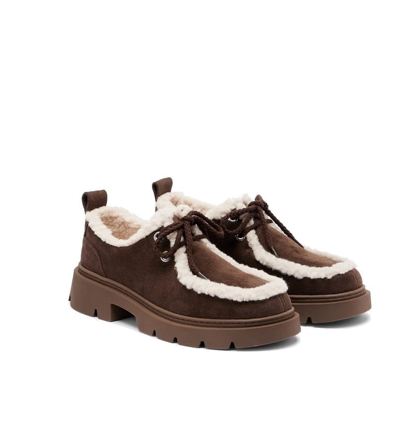 Inuikii Mocabee Curly to ocieplane mokasyny marki premium, stworzone z myślą o chłodniejszym sezonie. Cholewka z miękkiego zamszu została obszyta puszystą wełną (curly/shearling), która otula stopę i reguluje temperaturę. Solidna, traktorowa podeszwa nadaje nowoczesny charakter i zapewnia pewny krok na miejskich nawierzchniach.