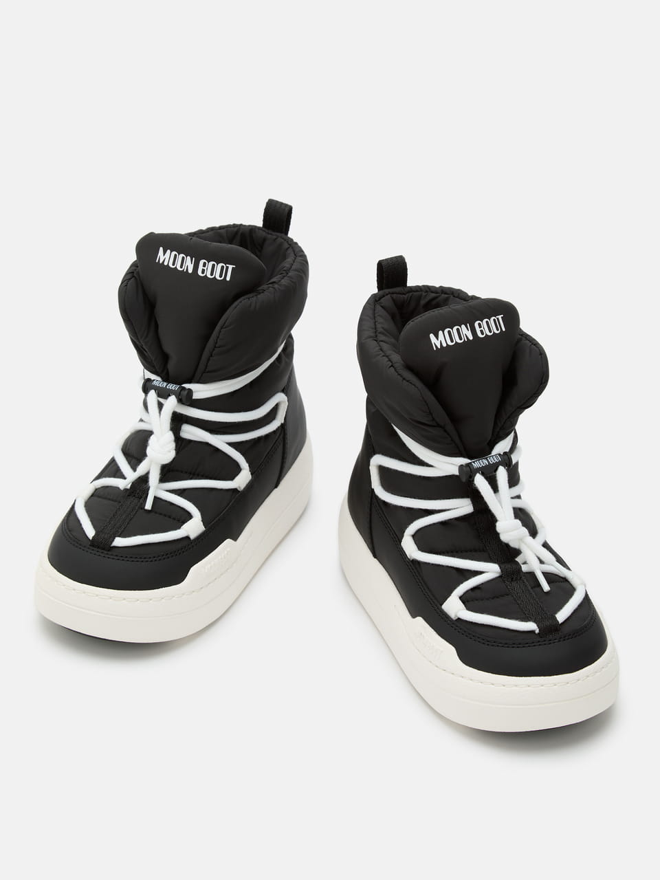 Od miejskich ulic po odległe, wyimaginowane światy – Moon Boot Junior Park Mid gwarantują młodym odkrywcom kosmiczny komfort i ciepło. Wzorowane na kultowych Moon Boot Icon, posiadają przytulną przestrzeń wewnątrz, charakterystyczne krzyżujące się sznurowadła rurowe i elastyczną podeszwę środkową z pianki EVA, która amortyzuje każdy krok. Wsuwany fason z tradycyjnym sznurowaniem i pętelką na pięcie ułatwia zakładanie i zapewnia dobre dopasowanie.