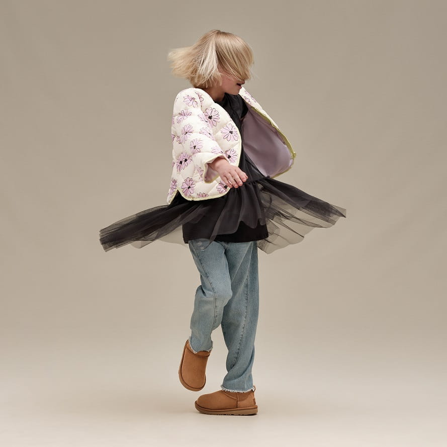 Ulubiona klasyka w wersji dla dzieci. Model Classic Ultra Mini to niska cholewka ułatwiająca zakładanie, miękkie ocieplenie i lekka, elastyczna podeszwa – idealne na co dzień w chłodne miesiące. Ciepło, wygoda i ikoniczny styl UGG w kompaktowej formie.