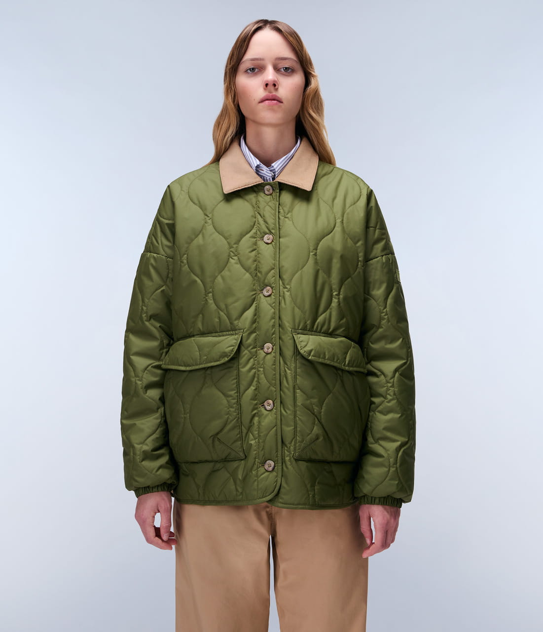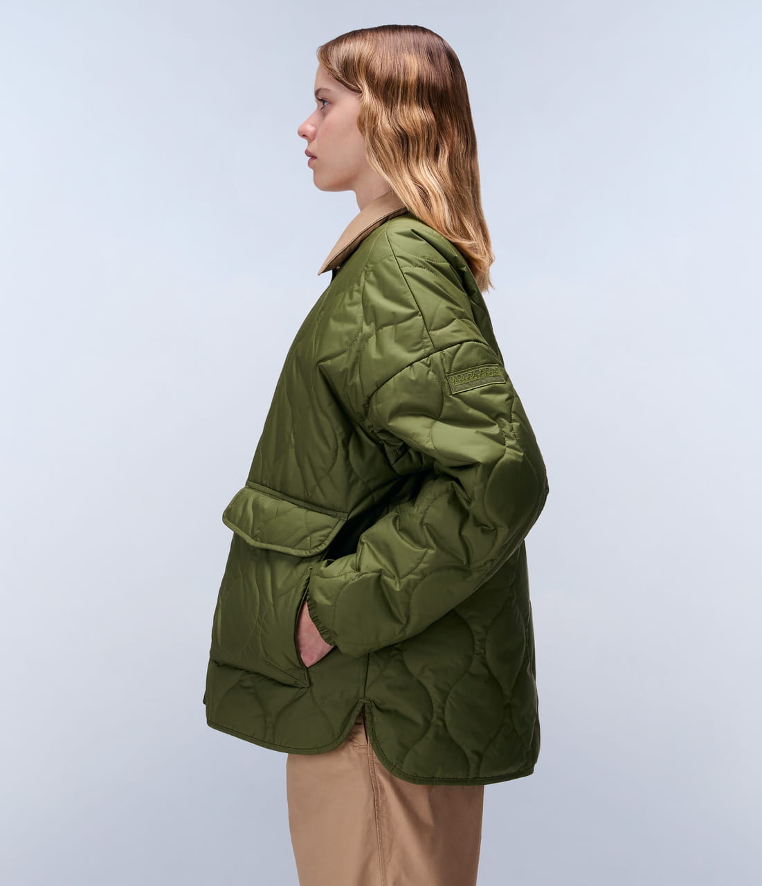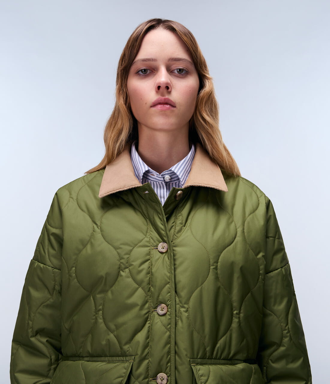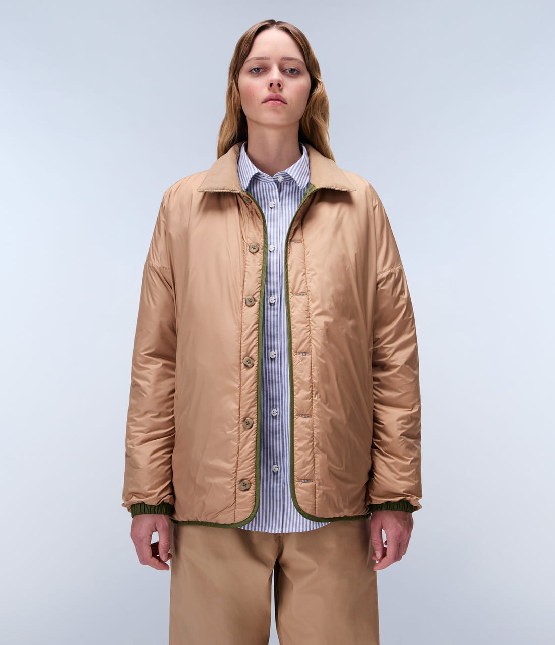 Kurtka damska Secret ma estetykę koszuli z zapięciem na guziki z przodu i spiczastym kołnierzem z kordu. Jest dwustronna, z jednej strony pikowana, a z drugiej gładka. Kurtka ma lekkie wypełnienie Comfortemp® zapewniające komfort termiczny w chłodne dni.