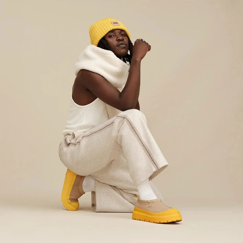 Kto (i nie możemy tego wystarczająco podkreślić) ma ochotę wybrać się z nami na spacer w mżawce? Zawsze możemy liczyć na to, że Tasman Weather Hybrid będzie podróżować z nami na zewnątrz, nawet jeśli jest trochę mokro. Wyposażone w wodoodporny zamsz i konstrukcję z uszczelnionymi szwami, a także przytulną wełnianą wyściółkę UGGplush z recyklingu, buty Tasman Weather Hybrid zapewniają lekkość i wygodę wsuwania. Podeszwa zewnętrzna wykonana jest z odnawialnej, odżywianej wodą deszczową trzciny cukrowej i posiada trwały otok ochronny sprawdzający się w mokrych warunkach.